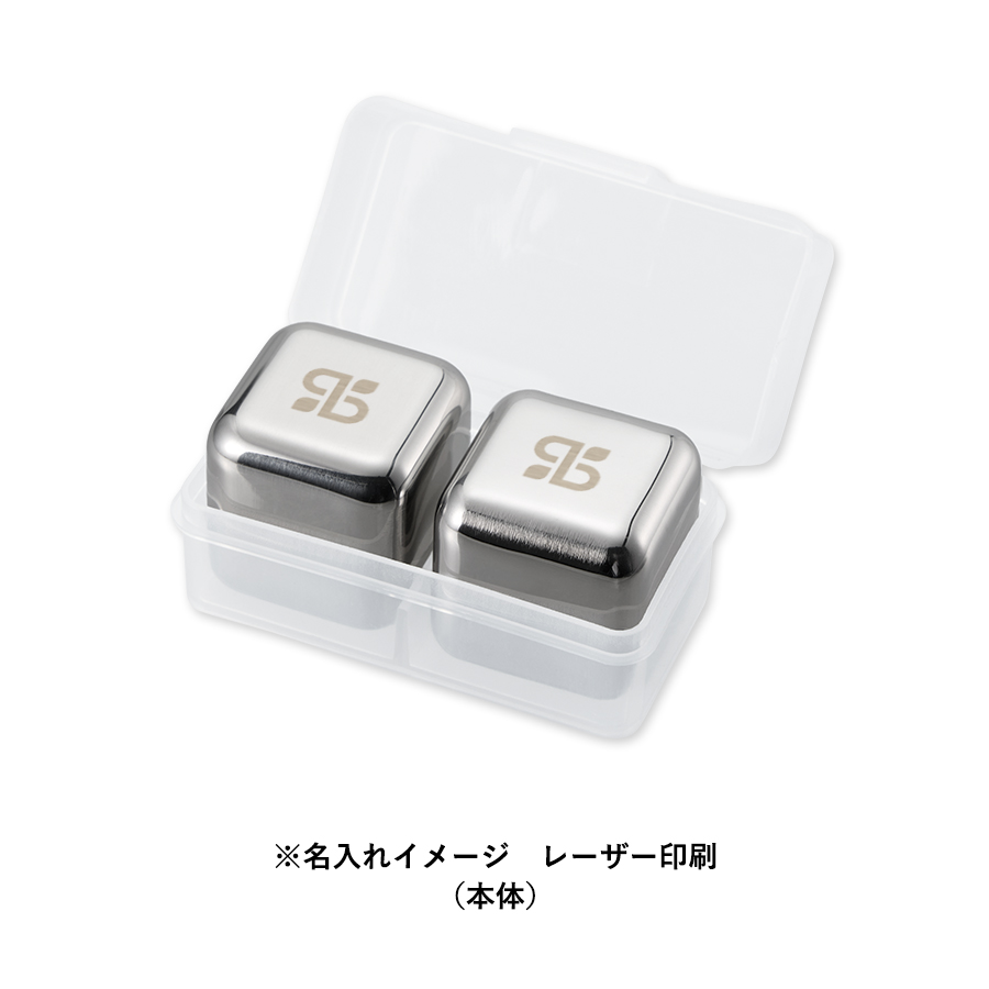 特徴/備考:そのまま冷凍庫に入れて冷やすだけで氷の代わりに使用できる、ステンレス製のアイスキューブです。氷のように溶けず飲み物が薄まらないため、ゆったりとお飲み物を楽しめます。また洗うことで何度も繰り返しご使用いただけます。うれしい収納用ケース付きで、ケース上部には名入れも可能です。さらにキューブ本体にもレーザー印刷が可能なので、さらにオリジナリティの高いグッズやノベルティをおつくりいただけます。ステンレスタンブラーなどと合わせた、ギフトボックスなどの提案もおすすめです。取説付 [フルカラー印刷] [スピード印刷] [新作商品.]