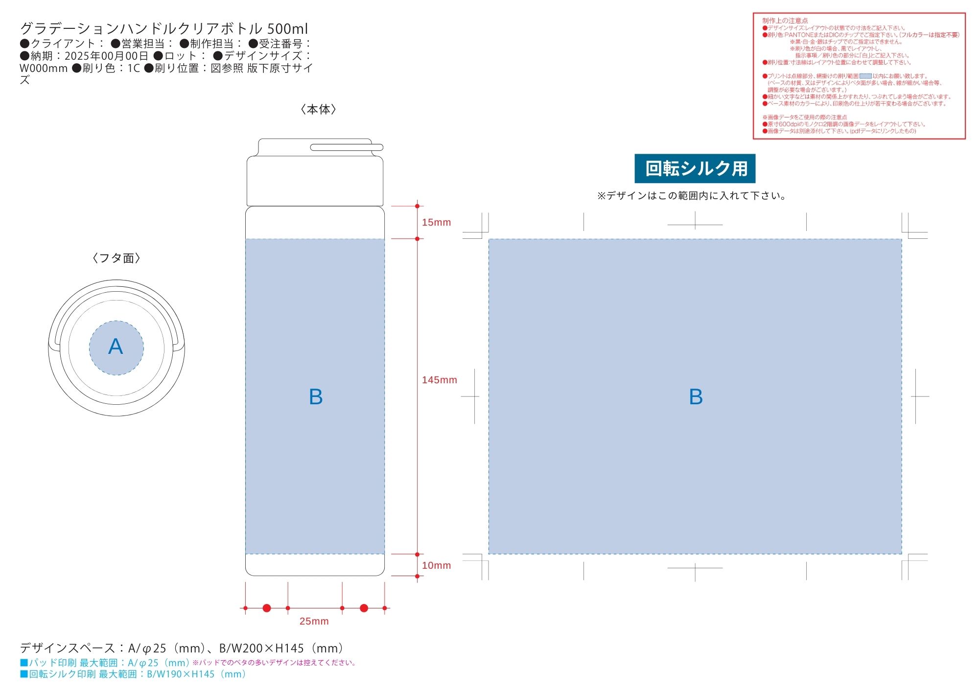 特徴/備考:さわやかな色合いのグラデーションがポイントのカラーボトルです。フタ上部にはハンドル付きで、持ち運びやすく便利な仕様です。500mlの使いやすく程よいサイズ感です。また目盛りをつけないことでデザインの幅も広がり、様々な案件にご提案いただけます。グラデーションデザインを活かしてスポーツイベントの物販品や、ブランドノベルティなどとしてもおすすめです。取説付(紙箱面) [フルカラー印刷] [スピード印刷] [新作商品.]