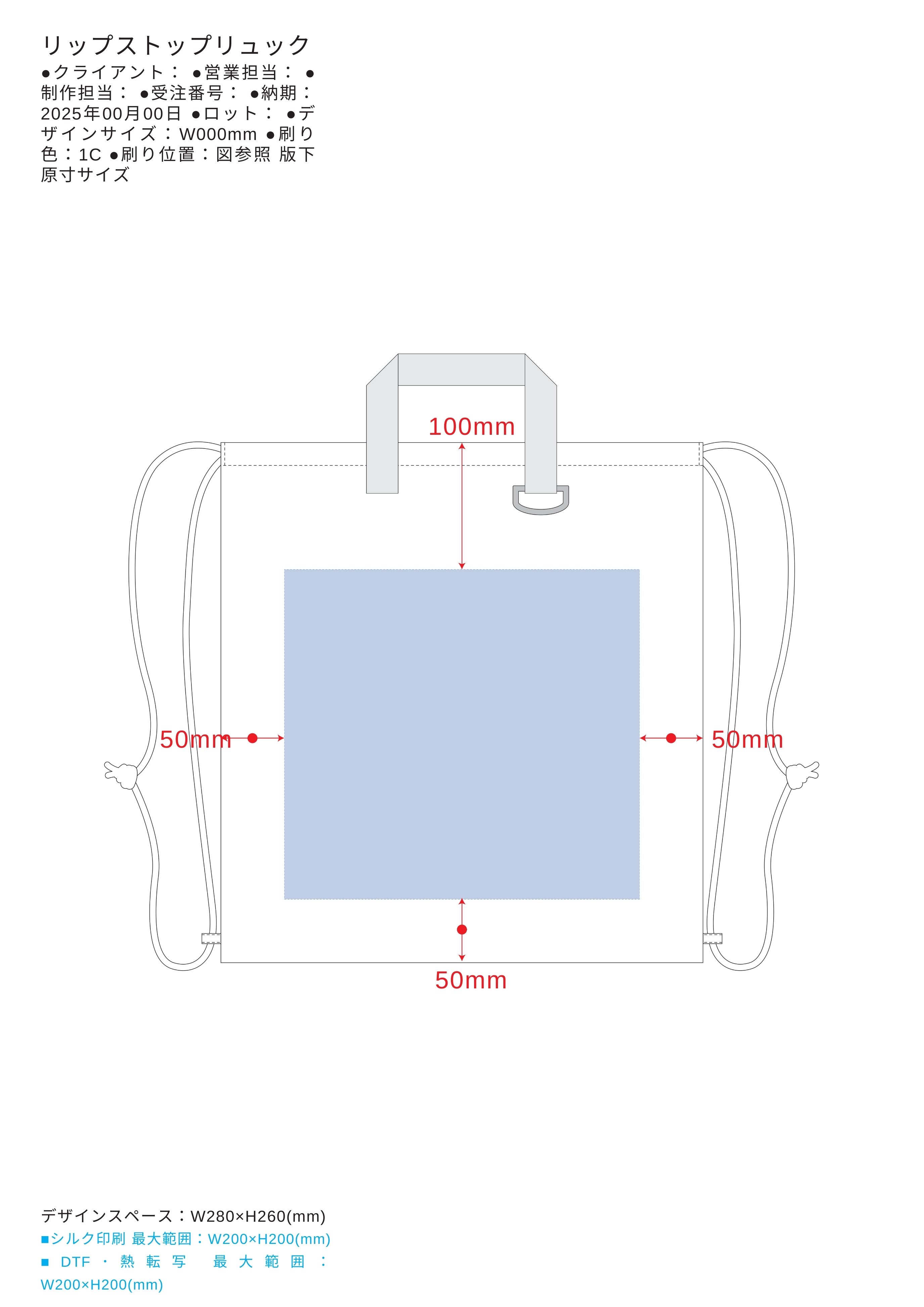 特徴/備考:使いやすさとデザイン性にこだわったリップストップリュックです。ハンドル部にDカンが付いているため、キーホルダーやカラビナなどを掛けて楽しむことができます。また肩紐は柄紐を使用しておりアクセントになります。靴やタオル、衣料品など、たっぷりと収納することができるサイズ感です。アクティブシーンにもおすすめなリュックはアウトドアブランドのノベルティやイベント用グッズなど幅広くご提案いただけます。※生地の特性上、シルク印刷をすると格子の柄が浮き出たような仕上がりになります。 [フルカラー印刷] [スピード印刷] [新作商品.]