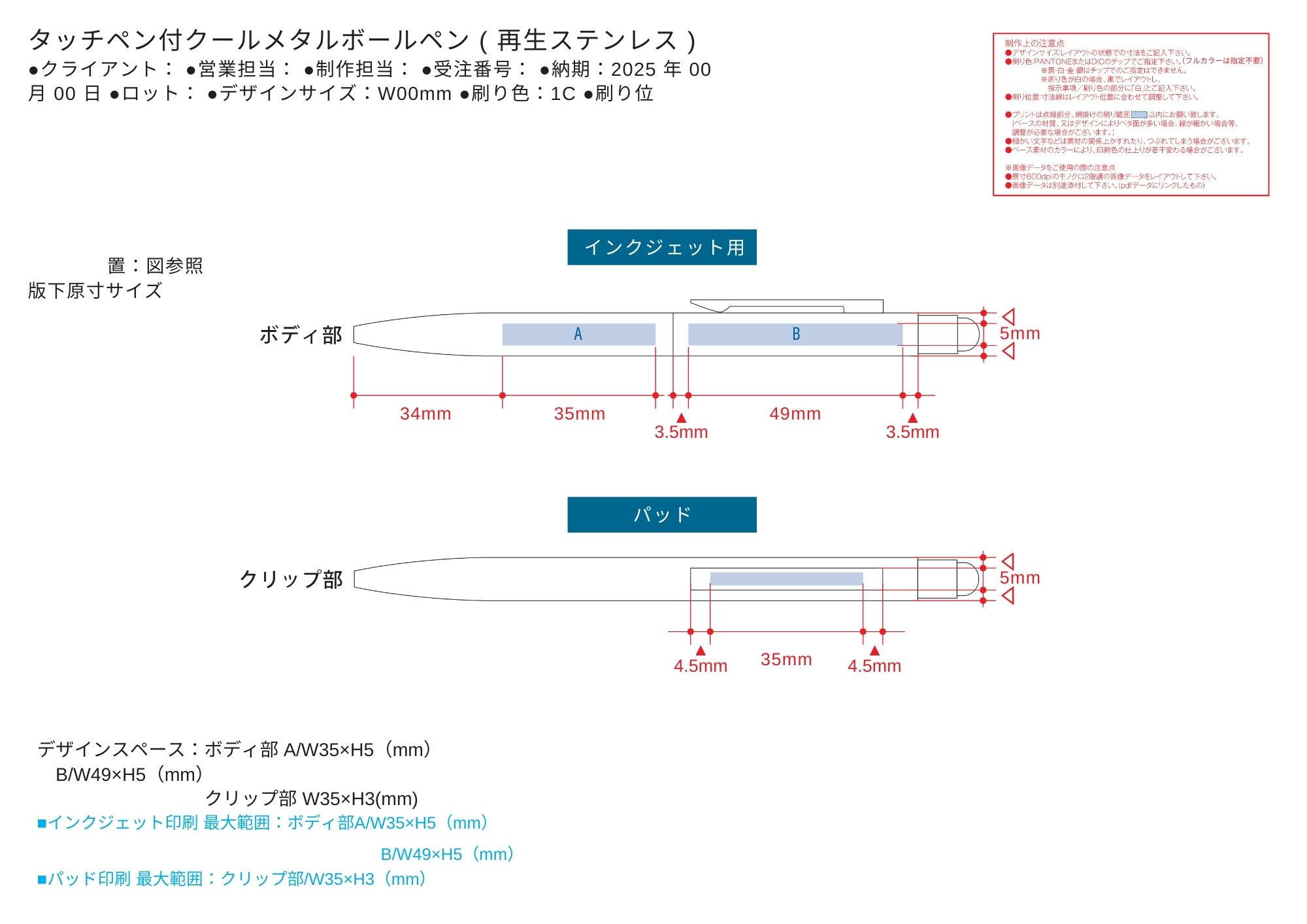 特徴/備考:程よい重量感とステンレスならではの色味で高級感のあるタッチペン付きメタルボールペンです。再生ステンレスを使用したエコ製品でありながら、カラークリア塗装で品のある仕上がりです。またペン先まで一体型に見えるシャープなデザインを採用しました。高級感があるため、周年記念やギフトなどご提案いただくのにおすすめです。さらに上部にはタッチペン付きで、スマートフォンなどを操作するのに便利です。クリップ部分・ボディ部分に名入れが可能で、ボディ部分にはフルカラー印刷も可能なのでキャラクターやブランドロゴなども再現することができ、オリジナルグッズを製作いただけます。ボール径0.7mm.対応機器 /スマートフォン、タブレットPCなど [フルカラー印刷] [スピード印刷] [新作商品.]
