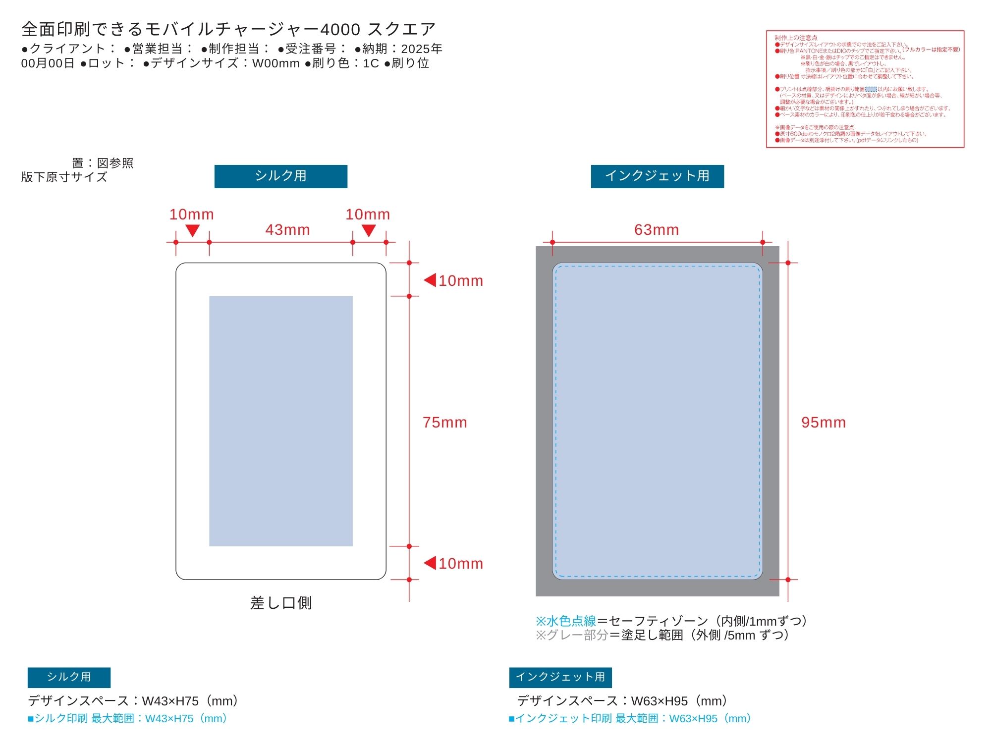- 全面印刷できるモバイルチャージャー4000 スクエア