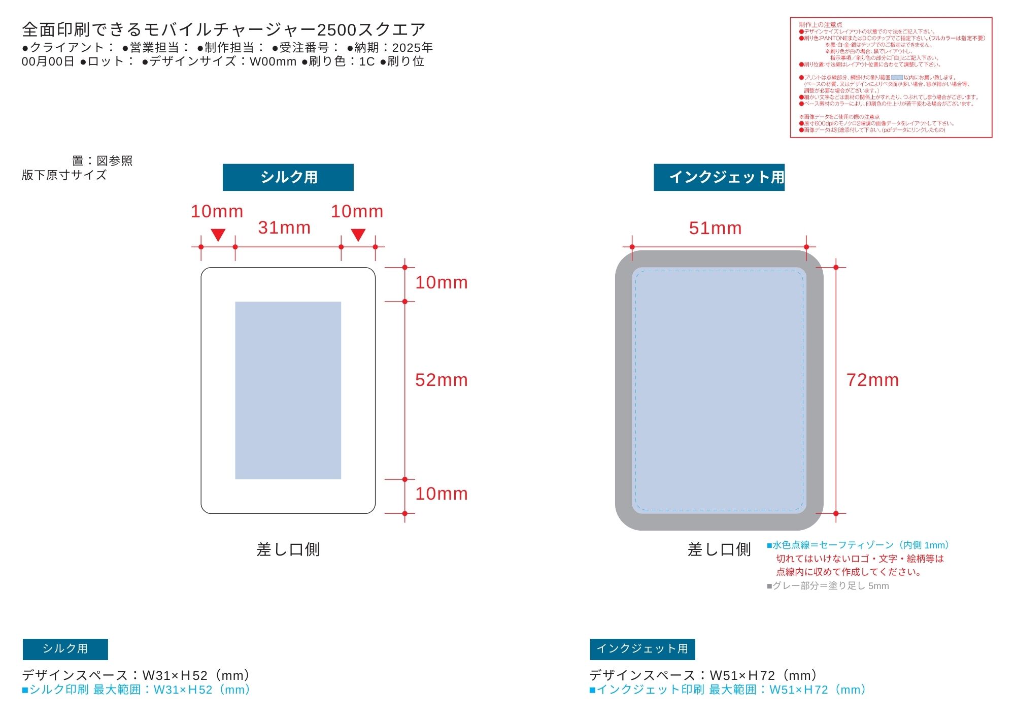 - 全面印刷できるモバイルチャージャー2500 スクエア