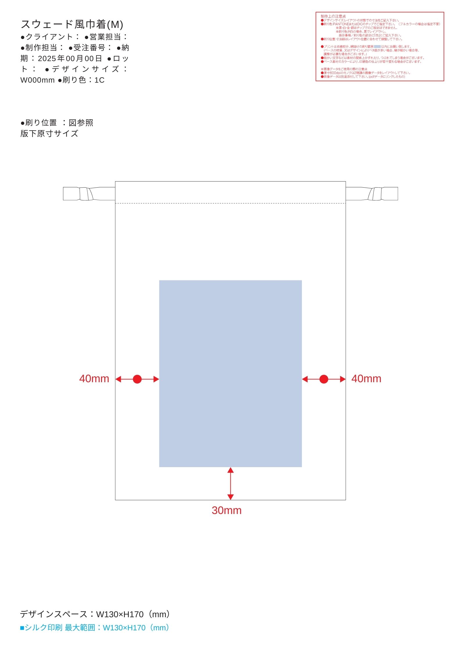 お見積書の備考に記載されたサイズの範囲で名入れデータを作成いただき、完全データでお送り下さい。原則一色ですが、印刷色はお好きなカラーが選べます。データの入稿先は、お見積り書の本文にてお知らせいたします。