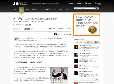 米グーグルが先週発表した7~9月期の決算は、売上高が165億2300万ドルとなり、1年前から20%増加した 。一方純利益は28億1300万ドルで同5%減少。また特別費用を除いた1株利益は6.35ドル。7~9月期の決算は売上高、1株...