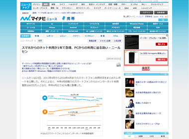 スマホからのネット利用が1年で急増、PCからの利用に迫る勢い - ニールセン
