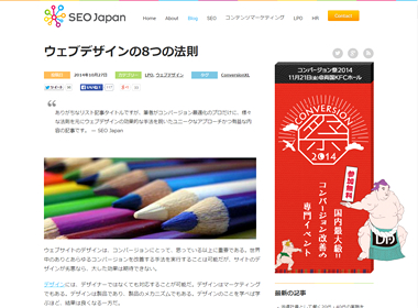 ありがちなリスト記事タイトルですが、筆者がコンバージョン最適化のプロだけに、様々な法則を元にウェブデザインの効果的な手法を説いたユニークなアプローチかつ有益な内容の記事です。 ? SEO Japan...