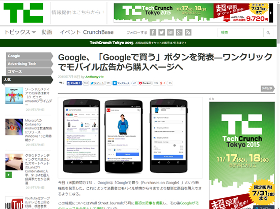 今日(米国時間7/15)、Googleは「Googleで買う(Purchases on Google)」という新機能を発表した。これによって消費者はモバイル検索から今までより簡単に商品を購入できるようになる。この機能につ...