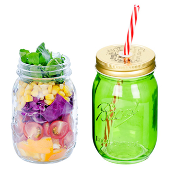 ニューヨークで空前の人気を誇るグラスジャー。日本でも女性を中心にブームとなっています。 穴あき蓋(ドリンク用)、穴無し蓋(サラダ用)、ストロー
