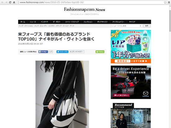 米経済誌フォーブスが「世界の最も価値のあるブランドランキング」を発表した。ファッションおよびスポーツブランドでは「ナイキ(NIKE)」が18位にランクインし最高位を獲得。全13ファッションブランドがトップ100入りし...