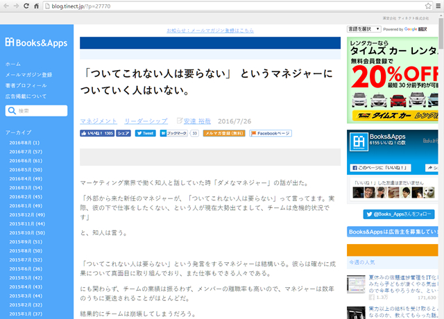 マーケティング業界で働く知人と話していた時「ダメなマネジャー」の話が出た。「外部から来た新任のマネジャーが、「ついてこれない人は要らない」って言ってます。実際、彼の下で仕事をしたくない、という人が現在大勢出て...