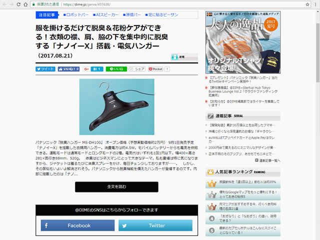 服を掛けるだけで脱臭&花粉ケアができる!衣類の襟、肩、脇の下を集中的に脱臭する「ナノイーX」搭載・電気ハンガー