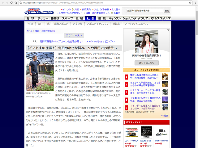 掃除、洗濯に雑用。毎日身の回りでやらなければならないことは多い。体調不良やケガなどでできなくなれば困る。「あれをやらなくては…」。そんな悩みを解決する、ちょっとしたお手伝いを行う会社がある。「株式会社御用聞き」代表の古市盛久 ...