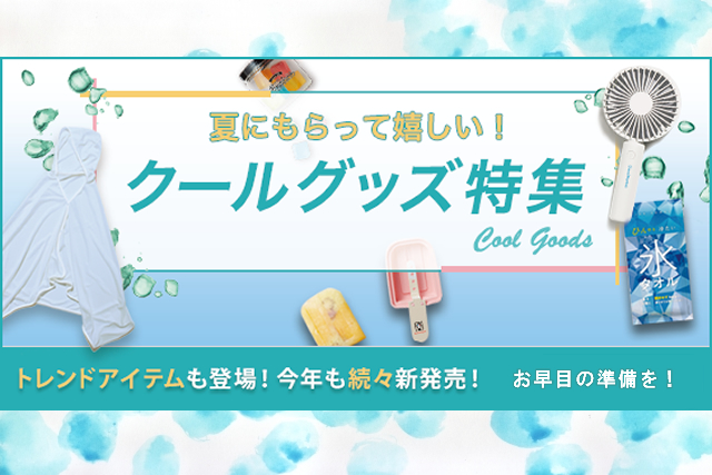 便利なクールアイテムが今年も続々新発売!豊富な在庫で、大ロット短納期も対応いたします!暑さ対策は屋外だけでなく、屋内でも大切。夏にもらってうれしいアイテムを販促物として配布することで、お客様満足も向上するはずです。