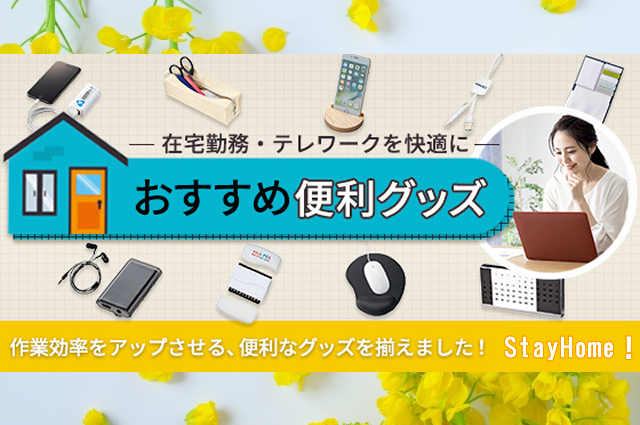 販促ノベルティ卸売りセンターの豊富なラインナップから、在宅・テレワークにおすすめなグッズを厳選いたしました。在宅ワーク促進の社内配布用としてのご利用はもちろん、ネット通販のノベルティ等、様々な販促・企業備品にぜひご利用ください。