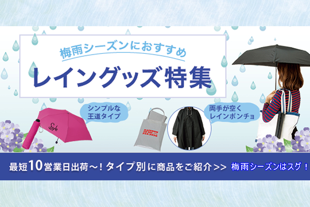 販促ノベルティ卸売りセンターでは傘をはじめとしたレイングッズを豊富に揃えており、ノベルティからオリジナルグッズまで幅広くご提案頂けます。