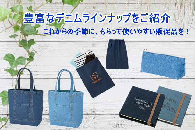 新型コロナウイルス(COVID19)の影響で、大規模イベントは引き続き慎重な対応を求められる状況ですが、これからの季節に、もらって使いやすいデニム素材の販促品を提案いたします。