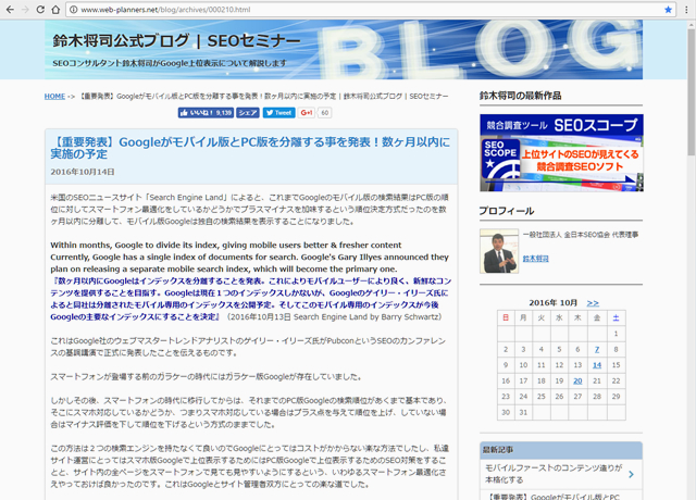 社長さんや店長さん、宣伝担当さん広報担当さんなど、ビジネスパーソンにオススメしたい今週の注目エントリーをご紹介/2016年10月24日版。トピック:【重要発表】Googleがモバイル版とPC版を分離する事を発表!数ヶ月以内に実施の予定