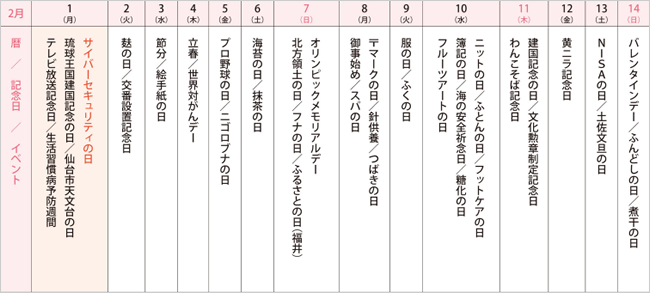 2016年2月の前半に実施される国民的イベントや記念日を調べてみました。企業、店舗、自治体の集客プロモーションや販促キャンペーンに記念日を活用しましょう。節分、立春、バレンタイン。春を告げるプロモーションで活性化を。