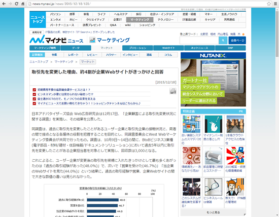 広報マーケティングやWEB担当者さん、中小企業の社長さんにオススメしたい、必読すべき今週の注目エントリーをご紹介。トピック:取引先を変更した理由、約4割が企業Webサイトがきっかけと回答