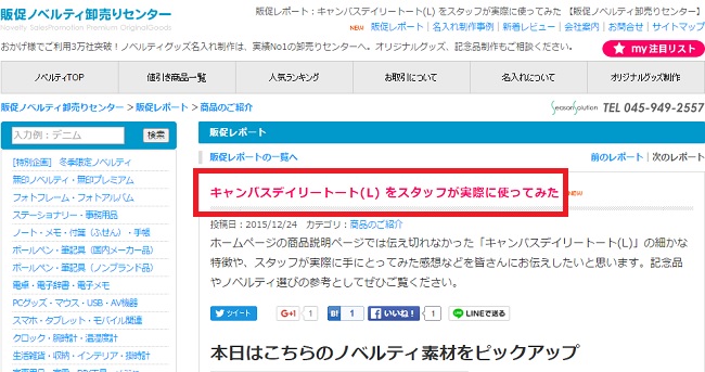 ホームページの商品説明ページでは伝え切れなかった「キャンバスデイリートート(L)」の細かな特徴や、スタッフが実際に手にとってみた感想などを皆さんにお伝えしたいと思います。記念品やノベルティ選びの参考としてぜひご覧ください。