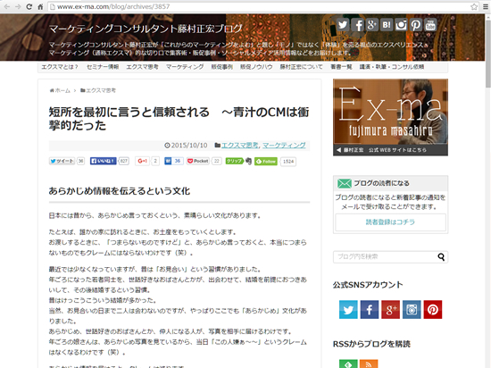広報マーケティングやWEB担当者さん、中小企業の社長さんにオススメしたい、必読すべき今週の注目エントリーをご紹介。トピック:短所を最初に言うと信頼される ~青汁のCMは衝撃的だった
