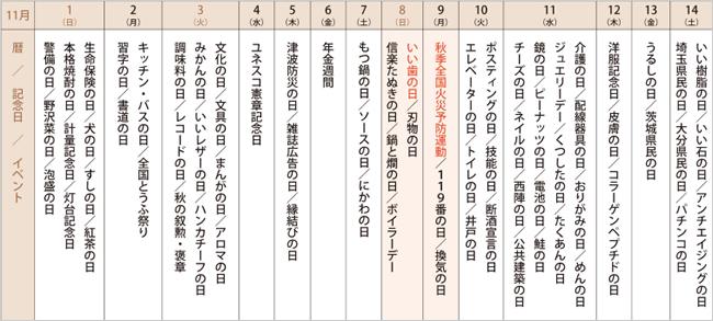 2015年11月の前半に実施される記念日や国民的イベントを調べてみました。企業、店舗、自治体などの集客プロモーションや販促キャンペーンに、記念日を活用しましょう。七五三、いい夫婦の日etc...家族の絆を深める販促シーンのいろいろ。