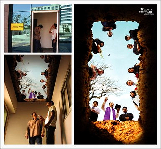 実用的な広告から、ネタっぽいものまで。面白いアイデアが盛り込まれたユニークな屋外広告を集めてみました。トピック:公共団体(がん患者支援協会)の啓発広告。屋外の喫煙所で展開されたキャンペーン、埋葬を演出し禁煙を促進しているようです。<インド>