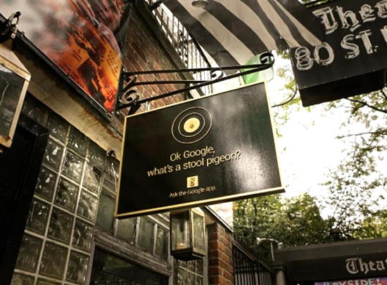 検索のグーグルが、スマホアプリ新バージョンのプロモーション戦略の一つとして選んだのが屋外広告。ニューヨークの市街地や観光スポットを中心に、音声検索「OK Google」の看板やオブジェクトを配置した広告キャンペーンを展開したようです。