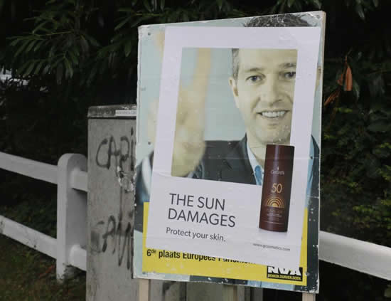 実用的な広告から、ネタっぽいものまで。面白いアイデアが盛り込まれたユニークな屋外広告を集めてみました。トピック:サンプロテクト(Gerards)の屋外広告。太陽によって色褪せたポスターに貼られた広告。こうなる前に、という事でしょうね。<ベルギー>