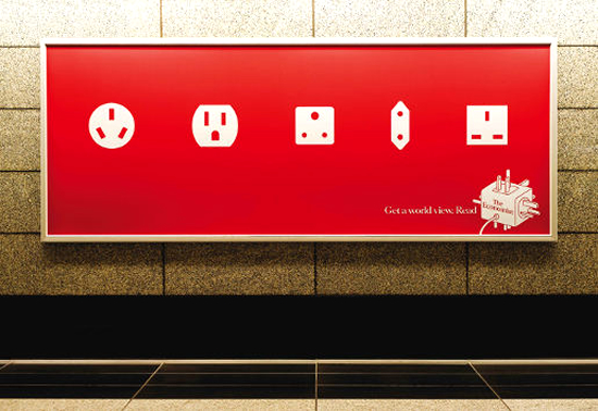 実用的な広告から、ネタっぽいものまで。面白いアイデアが盛り込まれたユニークな屋外広告を集めてみました。トピック:グローバル情報誌(The Economist)の屋外広告。世界的な見地で情報発信・・・ということを様々な国のプラグで表現しているようです。<米国>