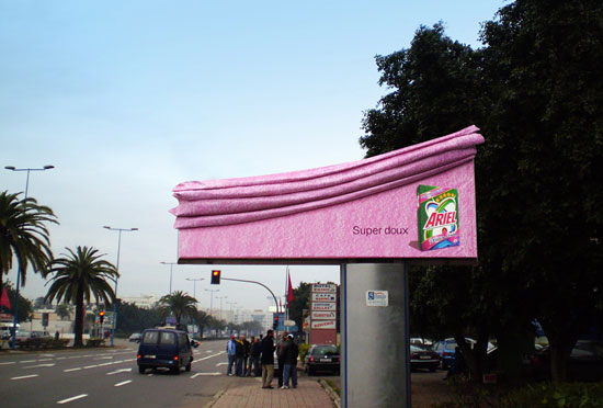 実用的な広告から、ネタっぽいものまで。面白いアイデアが盛り込まれたユニークな屋外広告を集めてみました。トピック:柔軟剤(アリエールスーパーソフト)の屋外広告。看板もしなやかになるほど、柔らかい仕上がりのようです。<アラブ首長国連邦>