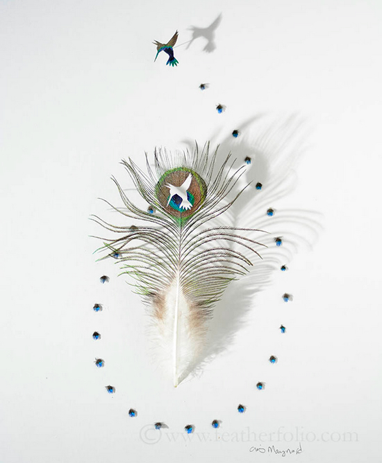 鳥の羽で表現する美しい切り絵、「Shadowboxes」