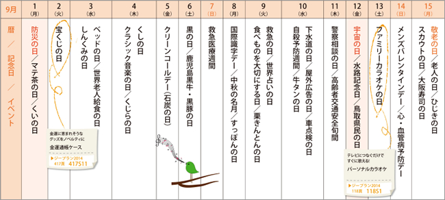 来月の記念日を調べてみました<2014年9月前半>