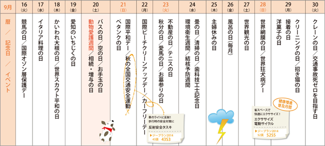 来月の記念日を調べてみました<2014年9月後半>