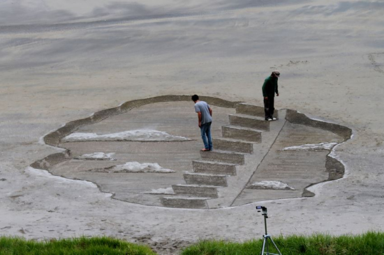 チリ、ニュージーランド、フランスからのメンバーが参加する<3DSD(=3D Sand Drawing)>というアーチストグループが制作する、ビーチの砂に描かれた3Dデッサンがfacebookを中心に話題となってます。公式facebookページから一部をご紹介します。