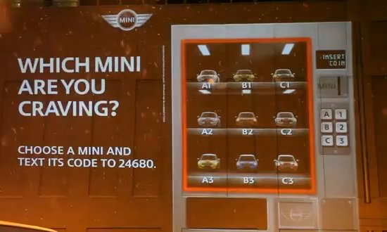 実用的な広告から、ネタっぽいものまで。面白いアイデアが盛り込まれたユニークな屋外広告を集めてみました。トピック:プロジェクターで投影された様々なMINI。モバイルサイトからのアクセスで、自動販売機で購入するような疑似体験ができるようです。<カナダ>