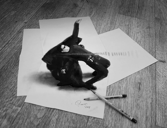 オランダ人アーチスト<ramon bruin>という方が運営する、facebookページ<JJK Airbrush>が注目です。錯視と呼ばれる手法で描かれた平面の絵は、特定の角度から眺めることで立体的に見えるようです。メイキング動画と併せてご覧ください。