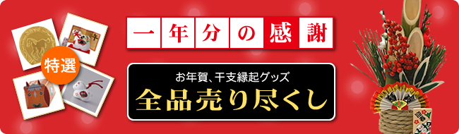 新春の来店促進や店舗集客、お年始のご挨拶回りなどで毎年大好評の「お年賀グッズ、干支関連ノベルティ」は、12/13より全品値下げで更にお得になりました。縁起茶、福銭、 慶春の湯など、最短翌日発送にて多数ご用意。小ロット対応、ご注文はお早目に。