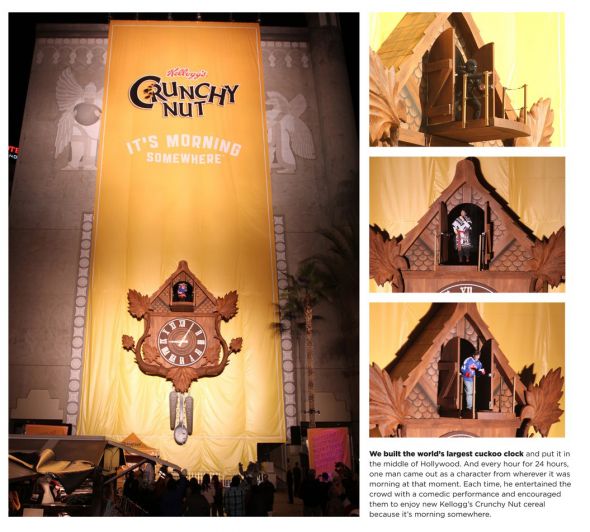 実用的な広告から、ネタっぽいものまで。面白いアイデアが盛り込まれたユニークな屋外広告と野外看板を集めてみました。トピック:シリアルの屋外広告。世界最大のカッコウ時計で、機械仕掛けの時報の他にスタッフによるショーも演出。スプーンの振り子も素敵です。