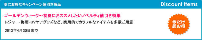 販促ノベルティ卸売りセンターでは、通常の卸売価格よりも更にお得な!値引きキャンペーンを期間限定で開催いたします。是非、お得なこの機会に名入れノベルティをご検討ください。皆様のご利用をお待ちしています。お得な期間は2013年4月30日まで。