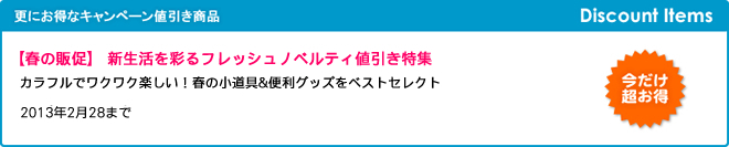 販促ノベルティ卸売りセンターでは、通常価格よりも更にお得な!値引きキャンペーンを期間限定で開催いたします。是非、お得なこの機会に名入れノベルティをご検討ください。皆様のご利用をお待ちしています。2013年2月28日まで。