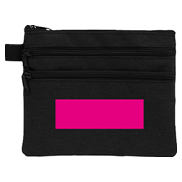 特徴/備考:モバイル周辺機器や文具をすっきり整理!ごちゃつきがちな小物類を3つのポケットで仕分けできる便利ポーチカードやメモ類、エチケット用品や持ち歩きの小物など用途に合わせて収納可能。シンプルなブラックカラーで男女問わず使いやすく、名入れ印刷にも対応しているため、ビジネスシーンから学生のノベルティや販促用アイテムとして最適! [新作商品]