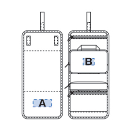 特徴/備考:吊り下げベルト付で旅行や出張先で大活躍、取り外すと個別に使えるポーチ2個付