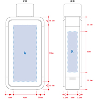 特徴/備考:人気のスタイリッシュなフレームスクエアボトルです。薄型タイプなのでバッグに入れてもかさばることなく、持ち運びができます。フレーム部分は取り外しが可能なので、洗うときにも便利です。取説付(紙箱面)、本体耐熱温度60℃、食品衛生検査済 [フルカラー印刷] [スピード印刷]