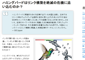 パンダが質の低いコンテンツを踏み潰し、ペンギンが質の低いリンクを凍らせ、今度は、ハミングバードがリンク構築を食い散らかそうとしているのだろうか?ハミングバードは、単なるアルゴリズムのアップデートではない。どちらかと言うと...