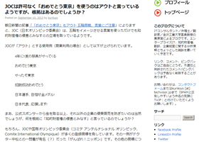 朝日新聞の記事「「おめでとう東京」もアウト 五輪商戦、言葉にご注意」によりますと、JOC(日本オリンピック委員会)は、五輪をイメージさせる言葉を使っただけでも知的財産権の侵害とみなすとの立場を取っているようです。...