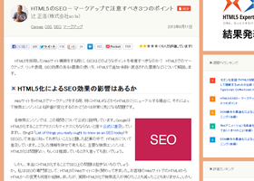 HTML5を採用したWebサイト構築をする際に、SEOはどのようなポイントを考慮すべきなのか? HTML5でのマークアップ、リッチ表現、SEO効果のあるh要素の使い方、HTML5で追加・削除・復活された要素などについて解説しま。...