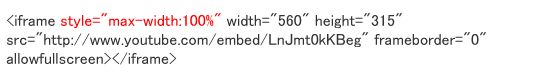 style="max-width:100%"youtube動画の埋め込みコードに、上記のコードを書き加えるだけで