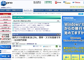 日経BPコンサルティングは2013年8月30日、国内のスマートフォン普及率が28.2%に達したとの調査結果を発表した。今年7月上旬から中旬にかけての調査で、約1年前の前回調査(18.0%)から10ポイントの増となった。また、携帯電...