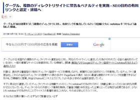 グーグルが日本国内の複数のディレクトリサイト運営会社に対し、同社のガイドラインに違反した行為が行われている旨の通知を行っているほか、一部の悪質なサイトには制裁を科している模様だ。[関連:[解説] なぜGoogleはディレクトリ登...